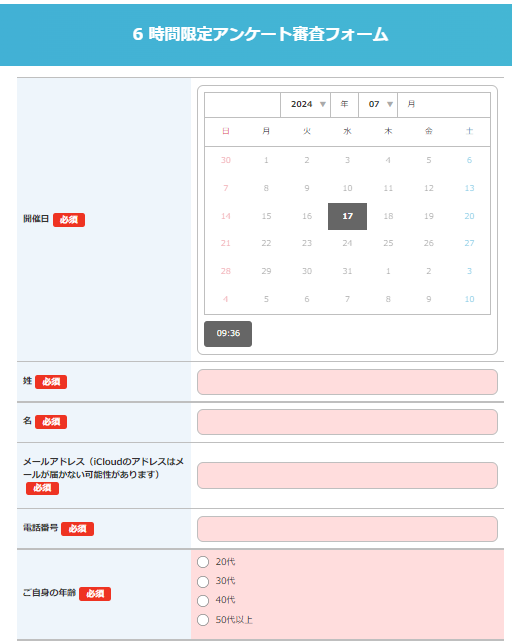 この審査フォームは自動審査になっており、項目を満たした方のみ合格する仕組みになっておりました。